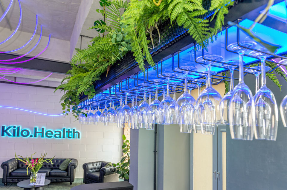 Kilo Health Reception Augalu ir Šviesos Instaliacija